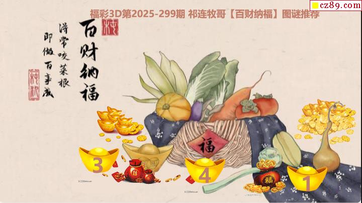 福彩3D2025299期 祁连牧哥百财纳福胆码图谜推荐