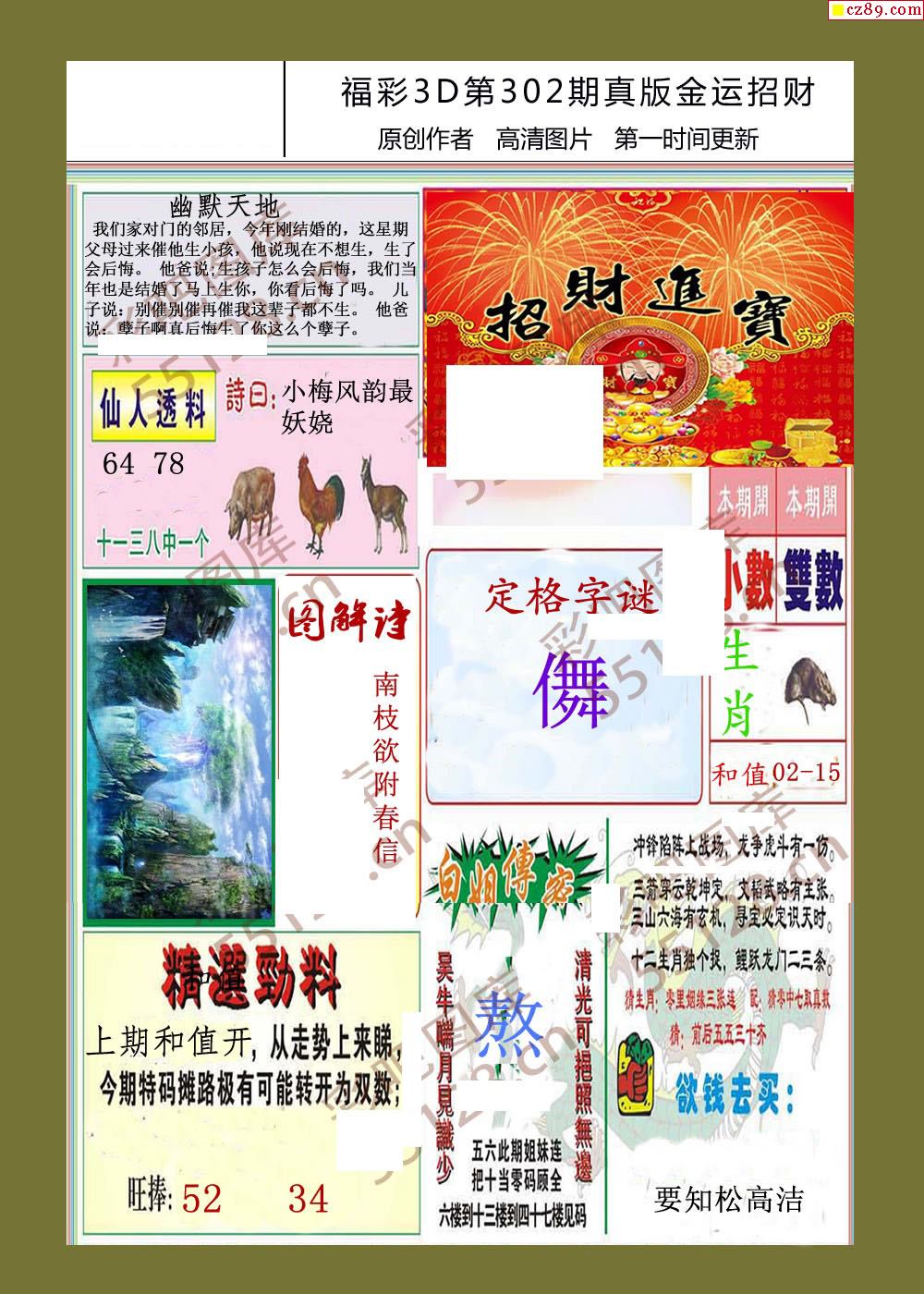 > 25年302期福彩3d金运招财画迷